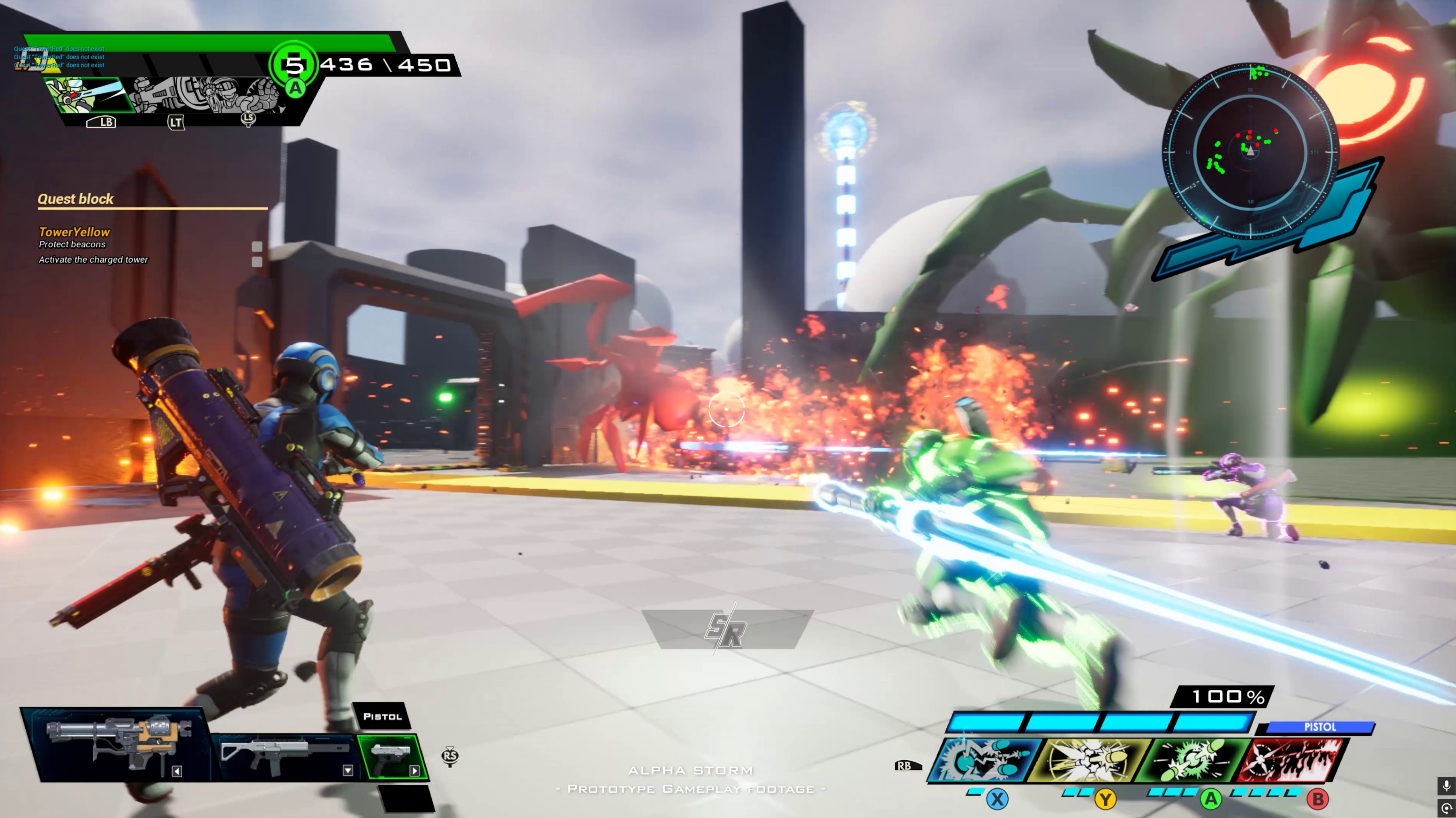 ALPHA STORM is a single player, level based, arcade 3rd person shooter where you must dash, combo, and 'Storm Rush' your way through a malfunctioning digital simulation while fighting a never ending horde of giant enemies.